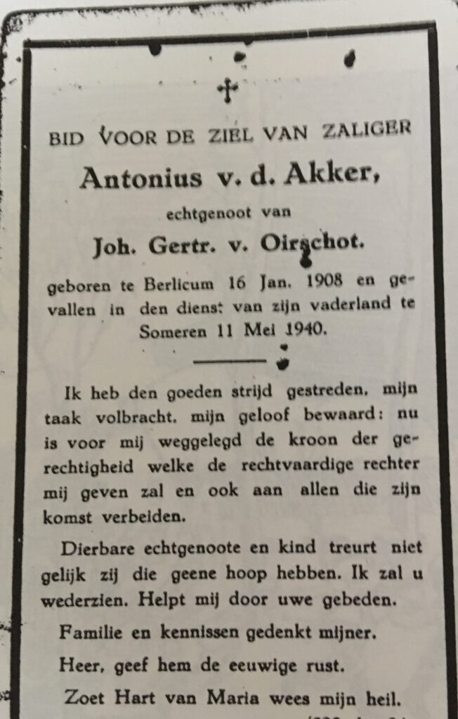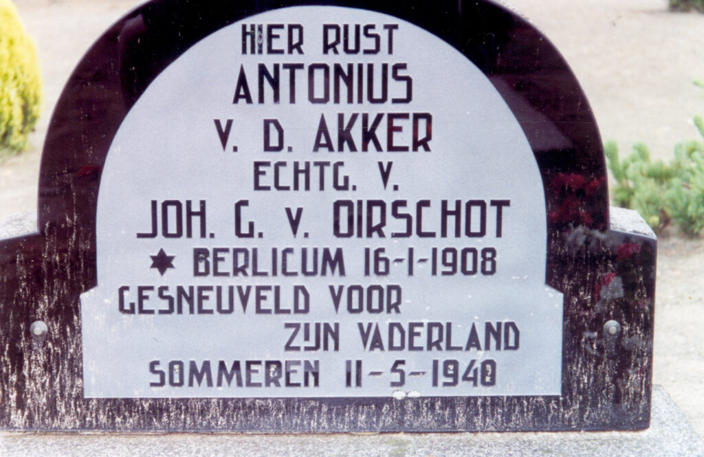 | • Antoon van den Akker 1908 – 1940. Dienstplichtig soldaat. 1-III-41 R.I. |