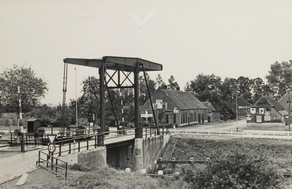 De Sluis lag vol grote schepen, erom heen enkele huizen en veel bomen. De dijk aan de overkant van het kanaal lag veel hoger dan die der ingenomen stelling . De keuken – en goederenauto’s ; beide in het terrein spoorloos verdwenen.